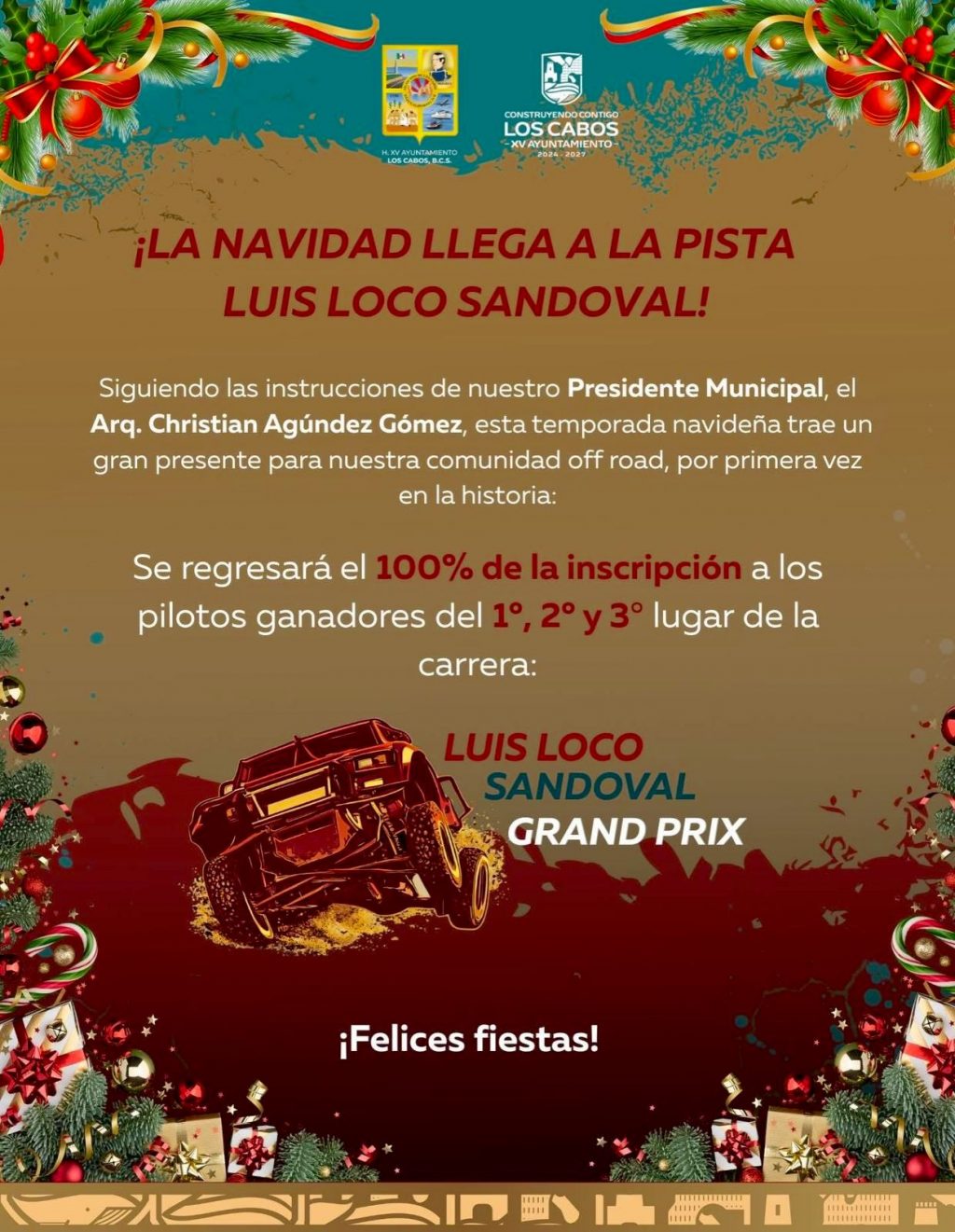 Montaño Gaytán, explicó que esta medida refrenda el compromiso del XV Ayuntamiento de Los Cabos de fortalecer disciplinas deportivas que generan identidad, participación social y derrama económica, consolidando al municipio como un referente del off road a nivel regional y nacional.