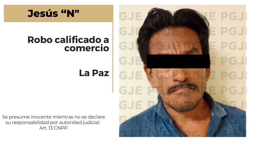 La Procuraduría General de Justicia del Estado (PGJE) formuló imputación por el delito de robo a establecimiento comercial abierto al público, en contra de Jesús “N”, tras los hechos ocurridos el pasado sábado 9 de septiembre, en un establecimiento comercial ubicado en la colonia Santa Fe, en la capital del estado, por lo que permanecerá en prisión preventiva.
