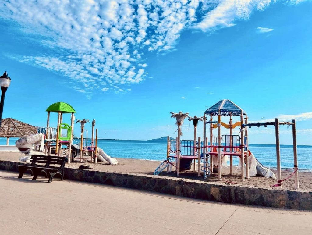 Loreto, B.C.S. 25 de septiembre, 2025.-En atención a la propuesta realizada a finales del pasado mes de abril durante la sesión extraordinaria del H. Cabildito Infantil del Municipio de Loreto, esta semana, personal de la dirección de obras públicas del XI Ayuntamiento a cargo de Florentino Robles Osuna, trabaja en la instalación de dos módulos de juegos infantiles en la zona de playa en el malecón de Loreto.