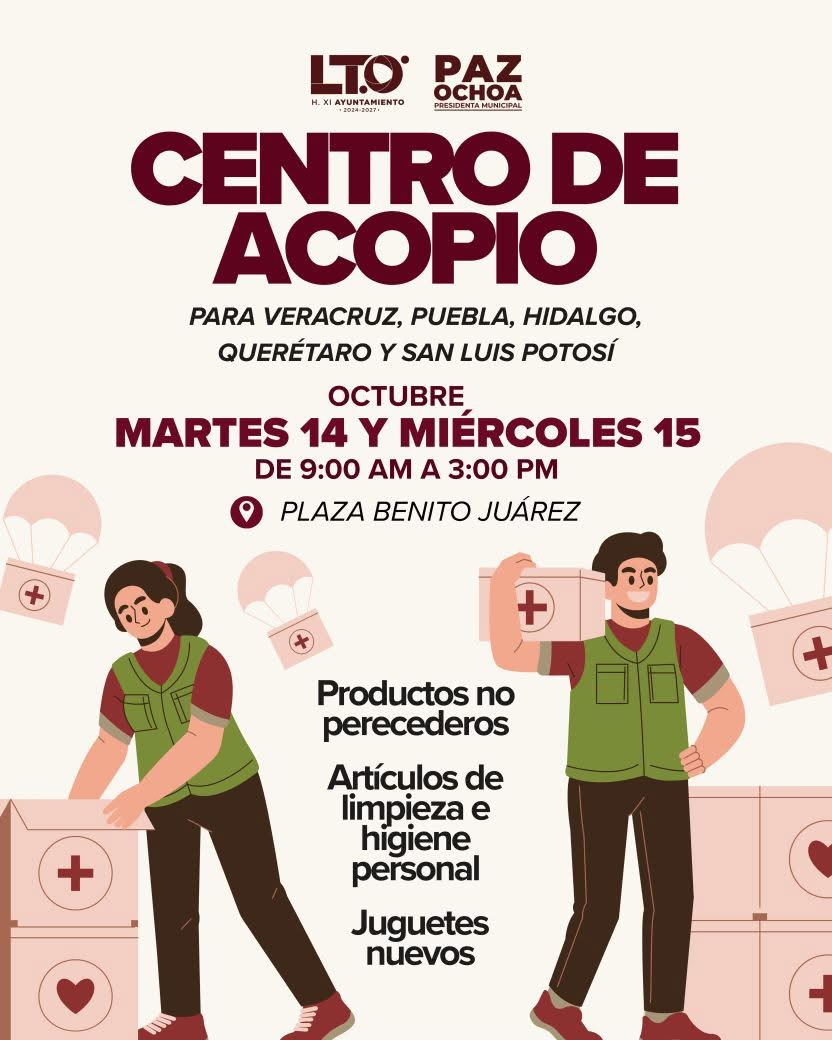 El Centro de Acopio estará operando durante el mes de octubre, en un horario de 9:00 AM a 3:00 PM. La ubicación designada para recibir los donativos es la Plaza Benito Juárez, un punto céntrico para facilitar la participación de la comunidad.