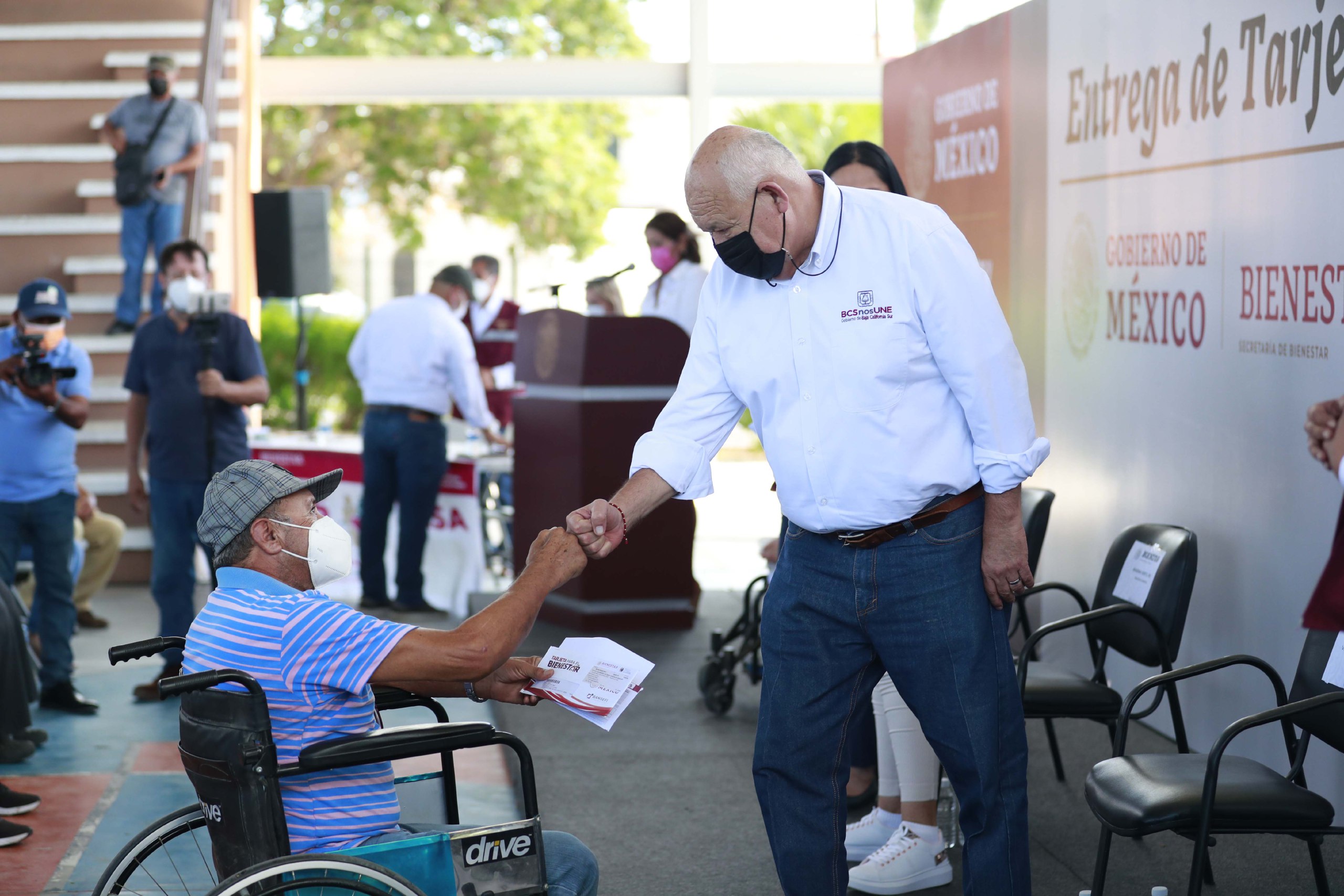 “Esta ayuda no resuelve todo, pero es justo que a los que construyeron este país como son los adultos mayores, se les reconozca; todos han contribuido a la grandeza de la nación, todos los mayores de 65 años. Y a partir del próximo año, en Baja California Sur todas las personas, de 30 a 60 años que viven con discapacidad van a recibir una pensión, cubierta la mitad por el Gobierno del Estado y la mitad por el Gobierno de la República”, agregó.