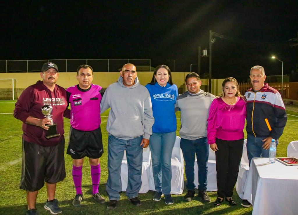 “Quiero aprovechar el momento para reconocer no solamente al deportista y futbolista que ha estado muchos años en este campo, si no también a un colaborador responsable, cumplido y excelente ciudadano, nuestro amigo “Camacho”, como le apodan por su parecido a Adrian Camacho, jugador profesional de la máquina cementera, el Cruz Azul”, externó la alcaldesa.