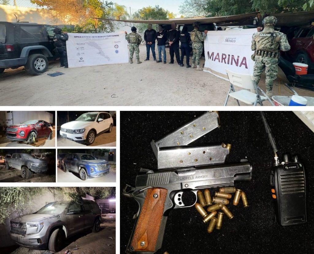 En el operativo encabezado por elementos de Marina y la Secretaría de Seguridad Pública del Estado, en coordinación con Defensa, la Fiscalía General de la República, Centro Nacional de Inteligencia, Guardia Nacional y la Procuraduría General de Justicia del Estado, se aseguraron las 13 unidades de reciente modelo, mismos que cuentan con reporte de robo en el extranjero y otros estados de la República por lo que fueron puestos a disposición de la autoridad competente.