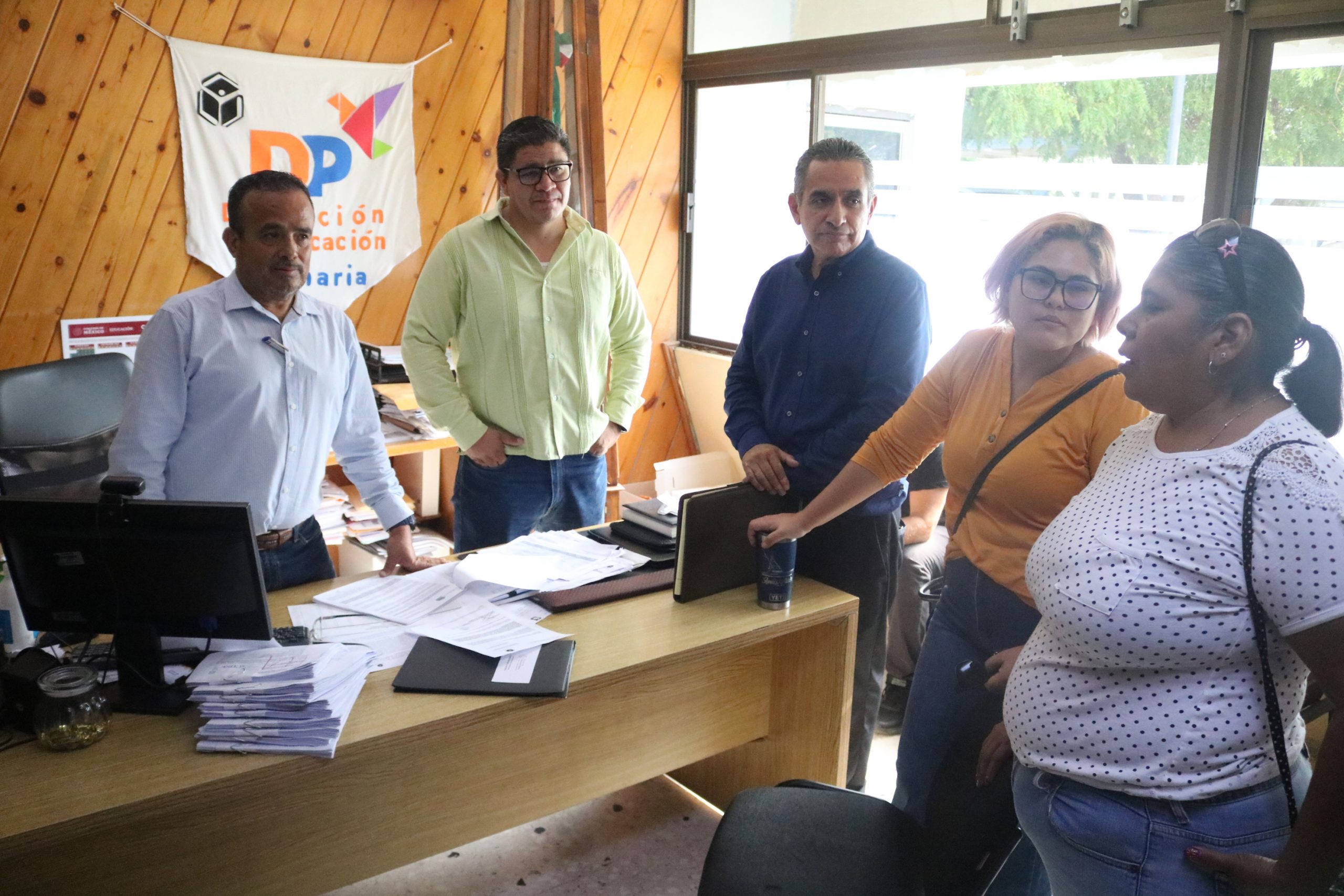 El servidor público recibió a integrantes de la sociedad de padres de familia, quienes solicitaron que las y los alumnos continúen a la brevedad posible sus actividades escolares en otros planteles, para evitar que sigan perdiendo clases.