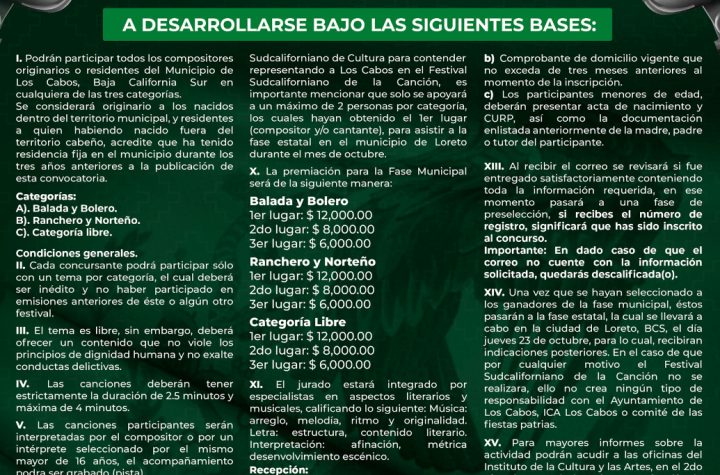 Convocan en Los Cabos a participar en fase municipal del Festival Sudcaliforniano de la Canción 2025