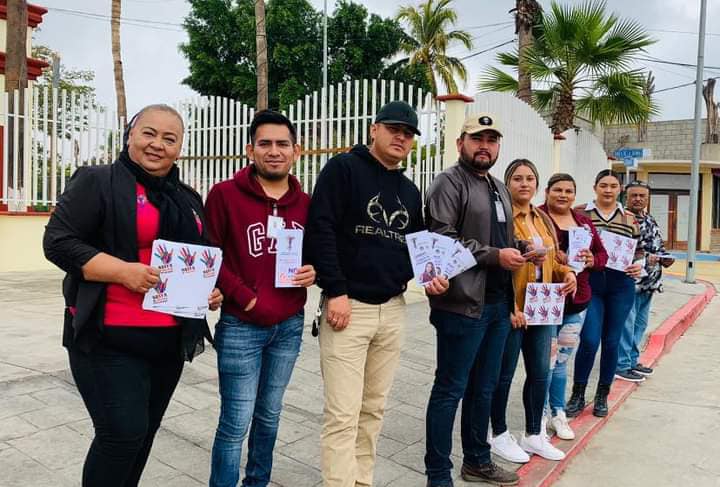 Entrega equipo del Instituto de las Mujeres trípticos con información y estampas. El…