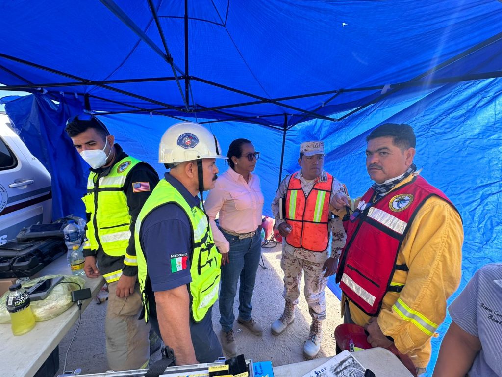 Con el respaldo de la Delegación Municipal de Cabo San Lucas; en la escena trabajan de manera coordinada: Protección Civil, Bomberos de CSL, personal de apoyo con pipas de agua, dompes, Ejército Mexicano y Servicios Públicos.
