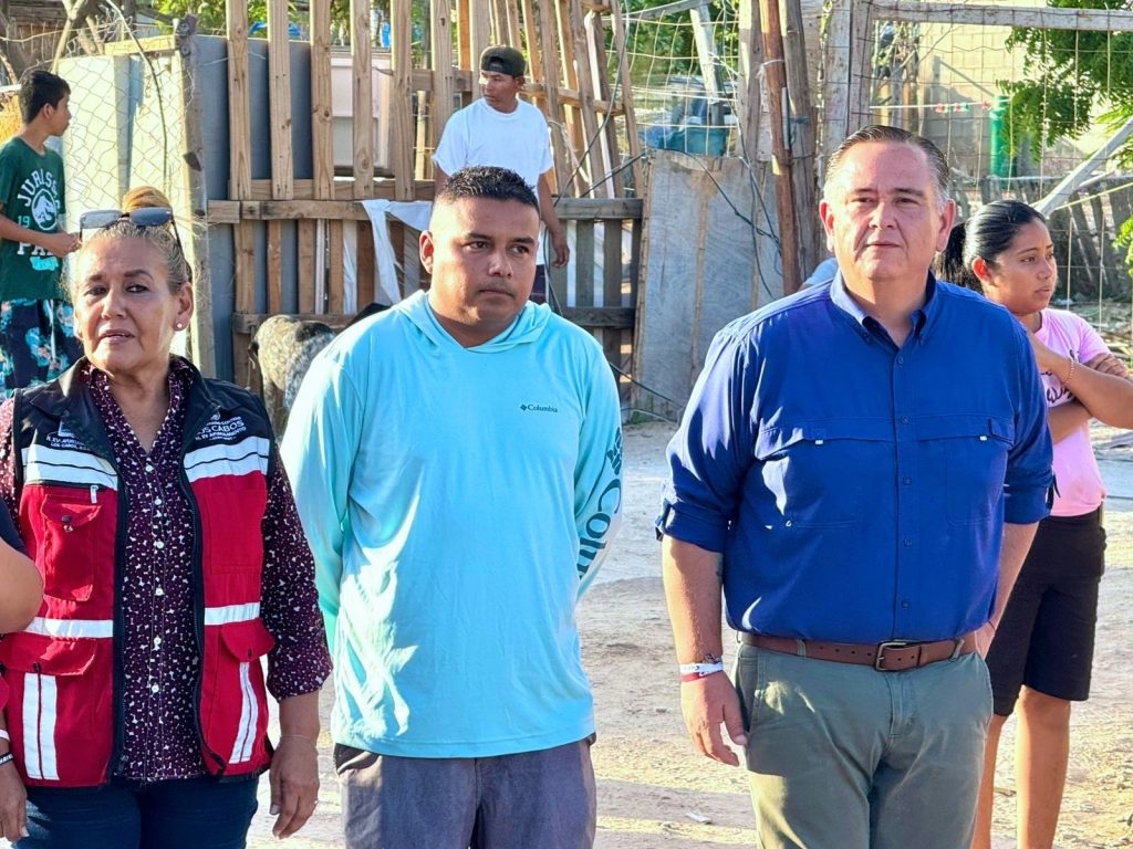 En representación del alcalde de Los Cabos Christian Agúndez Gómez, acudieron el director general de Desarrollo Social Carlos Castro Ceseña y la directora de Organización y Participación Ciudadana Judith Pérez Herrera, quienes se acercaron con las familias que radican en dicha zona.