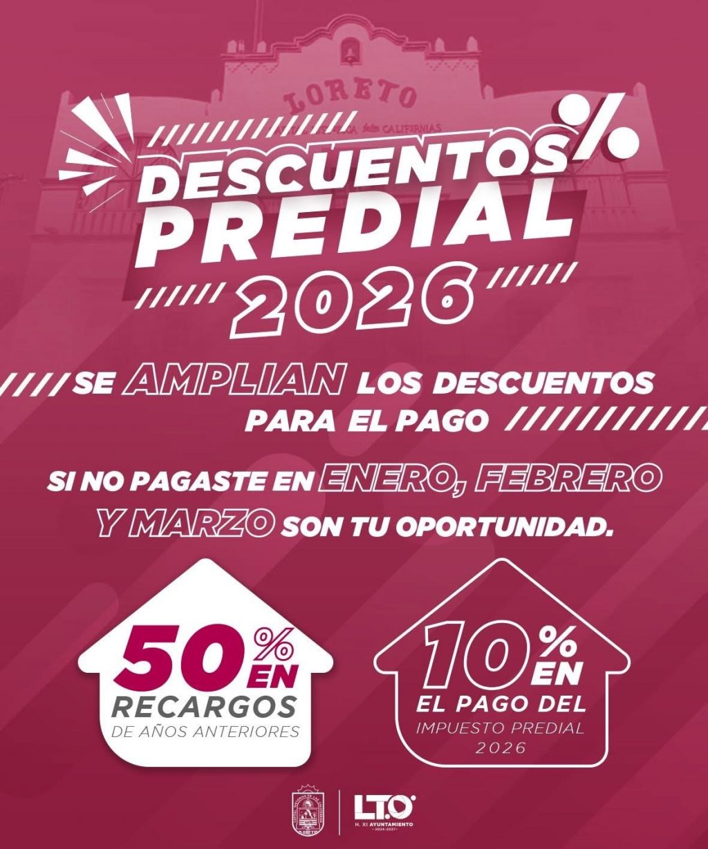 Loreto, B.C.S. 10 de febrero del 2026.- El XI Ayuntamiento de Loreto, a través de la Dirección de Ingresos, encabezada por Mercedes Vidaurrazaga, hace un atento llamado a la ciudadanía para aprovechar la ampliación del plazo para ponerse al corriente en el pago del impuesto predial, una medida que busca apoyar la economía familiar y facilitar la regularización fiscal.