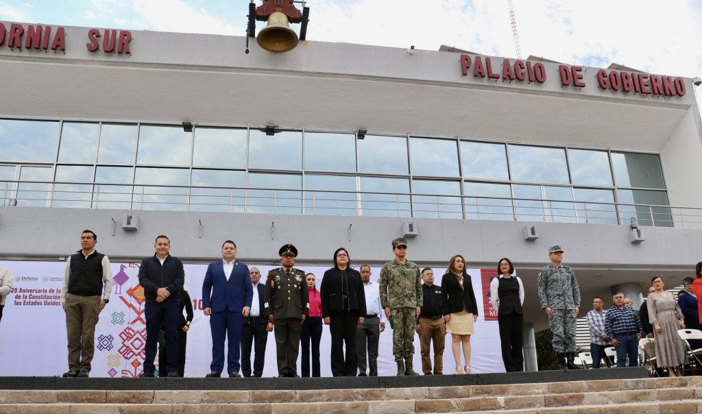 La subsecretaria General de Gobierno, Claudia Elena Meza de la Toba, encabezó, en representación del gobernador de Baja California Sur, Víctor Manuel Castro Cosío, la ceremonia conmemorativa del 109.º Aniversario de la Promulgación de la Constitución Política de los Estados Unidos Mexicanos, acompañada por titulares de los Poderes Judicial y Legislativo, así como por autoridades civiles y militares.