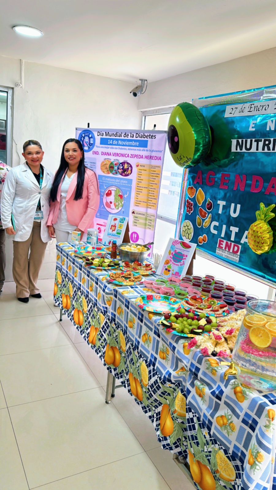 La nutrióloga Diana Verónica Zepeda Herida realizó una pequeña muestra gastronómica, con la finalidad de darle a conocer a los pacientes que visitaron la UMF No. 11, la importancia de conocer qué tipo de alimentos consumir, las porciones que se deben servir y los beneficios de tomar agua.