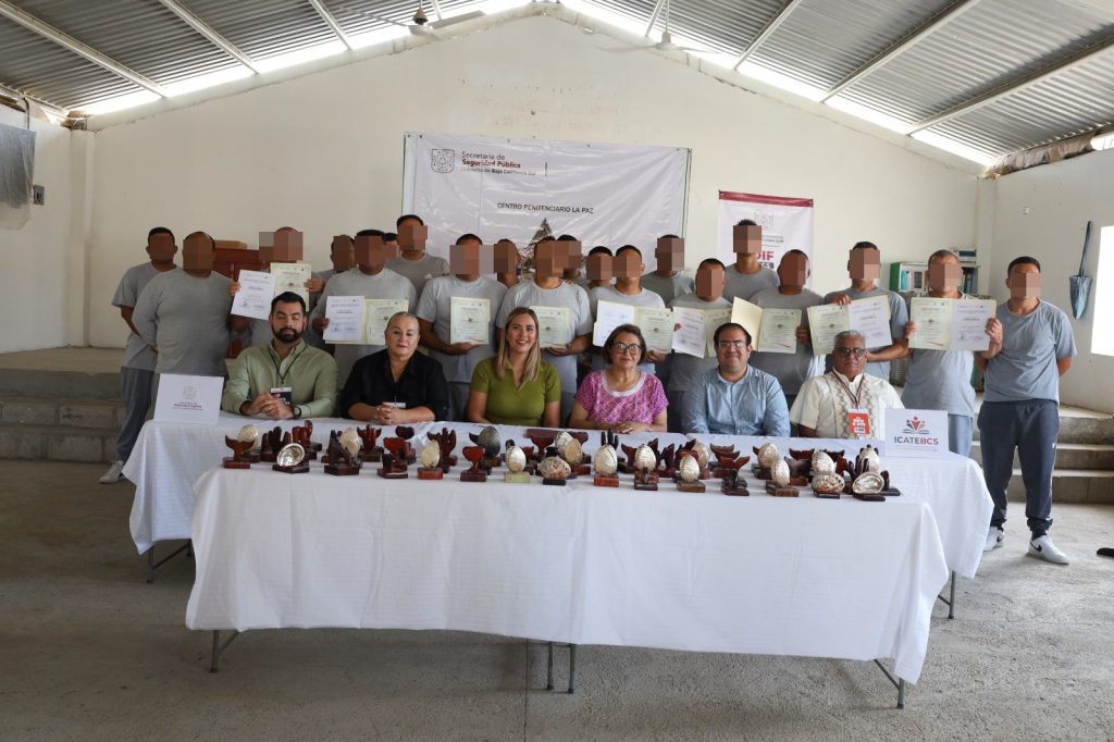 El Sistema Estatal DIF (SEDIF), en coordinación con el Instituto de Capacitación para los Trabajadores del Estado de Baja California Sur (ICATEBCS), realizó la clausura de los cursos “Elaboración de porta celulares con madera y concha” y “Elaboración de pisa papeles con madera y concha”, impartidos en el Centro de Reinserción Social de La Paz; así lo dio a conocer la presidenta honoraria del SEDIF, Patricia López Navarro.