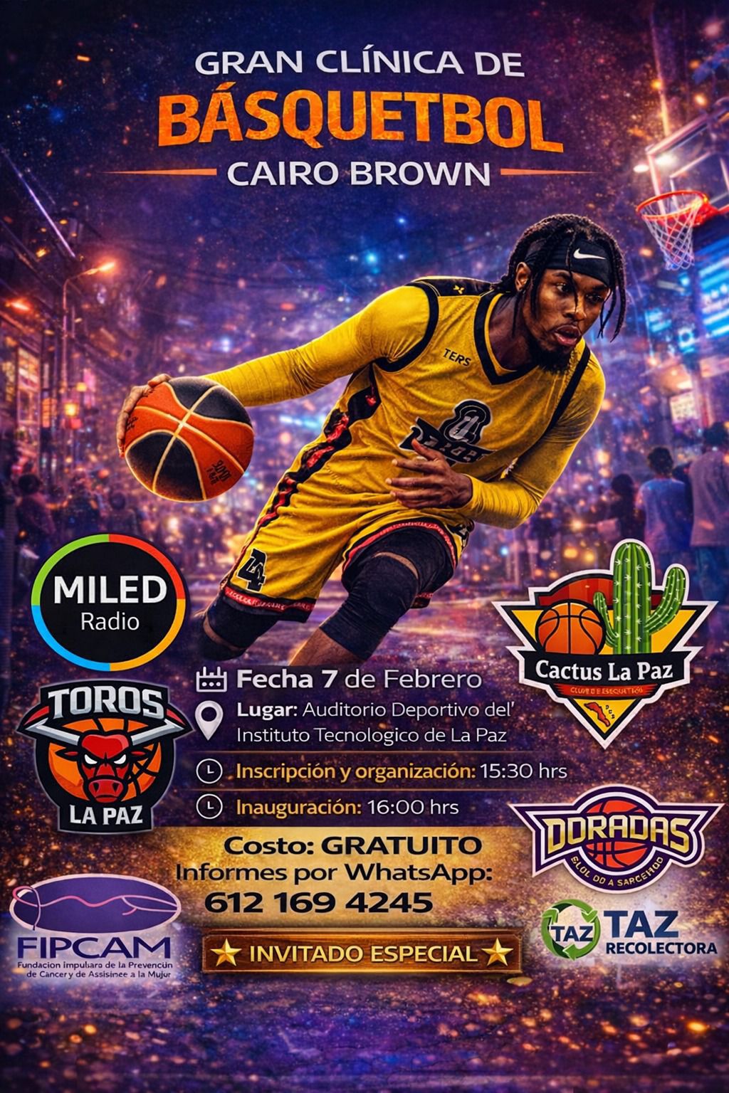 La actividad será impartida por el exjugador profesional Cairo Cules Brown y cuenta con el respaldo de Fipcam AC, Súper Stereo MILED La Paz, así como de las escuelas y clubes Toros La Paz, Doradas y Cáctus La Paz, quienes suman esfuerzos, experiencia y acompañamiento técnico para brindar a niñas y niños una experiencia formativa y de convivencia.