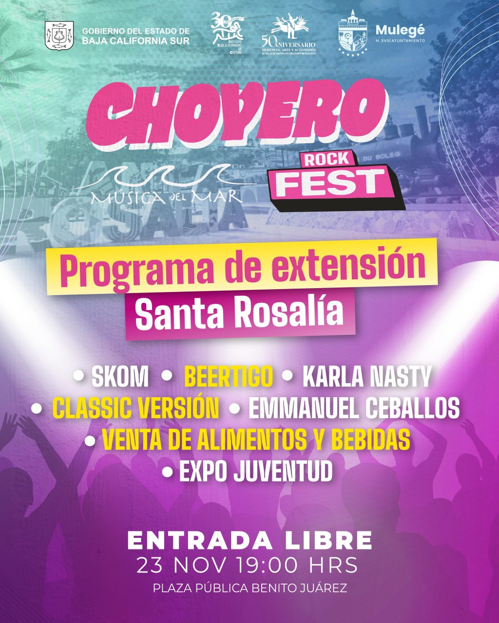 El H. XVIII Ayuntamiento de Mulegé y el Instituto Sudcaliforniano de Cultura tienen el placer de invitar a la comunidad a disfrutar del Choyero Fest, un evento que se llevará a cabo el próximo sábado 23 de noviembre de 2024, a partir de las 7 de la tarde en la plaza pública Benito Juárez.