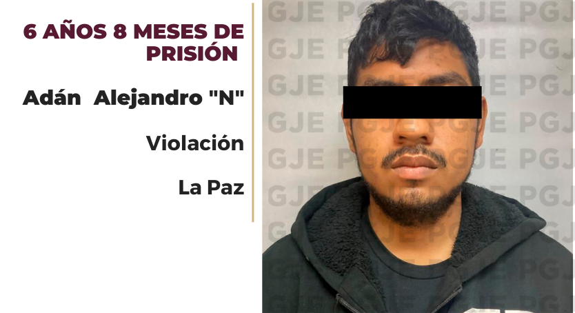 La Procuraduría General de Justicia del Estado (PGJE) de Baja California Sur demostró ante un Juez de Control la responsabilidad penal del acusado Adán Alejandro “N” de 24 años, por el delito de violación.