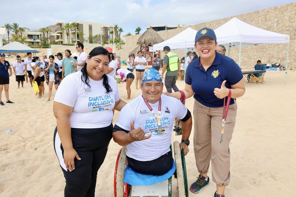 Los Cabos, B.C.S., 16 de julio del 2024.- El pasado fin de semana, el Gobierno de Los Cabos a través del Instituto Municipal para el Desarrollo e Inclusión de Personas con Discapacidad (IMDIS), en colaboración con el programa Tocando Corazones, celebró la participación superior a 60 niñas, niños, jóvenes y personas adultas durante el Duatlón Inclusivo en la playa El Chileno, el cual estaba conformado por 50 metros de nado y 50 metros de carrera.