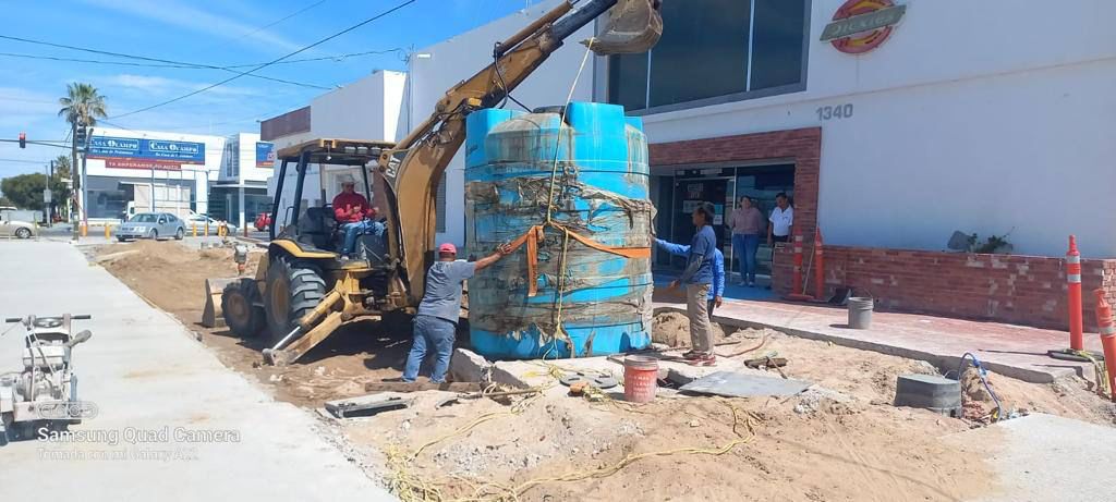 Este martes, en la reconstrucción de la banqueta peatonal se encontraron en el subsuelo dos cisternas de alrededor de 10 mil litros cada una, ocupando esta parte de la zona peatonal en el subsuelo y que de inmediato fueron retiradas y procediendo legalmente por esta ocupación de la via pública.