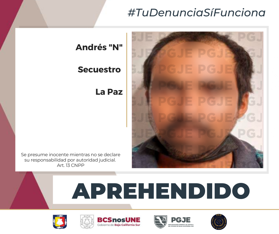 Con la cumplimentación de la orden de aprehensión en contra de Andrés “N”, de apodo El Henry, por su probable participación en el delito referido, la PGJE desarticuló otra banda de secuestradores que operaba en el municipio de La Paz.