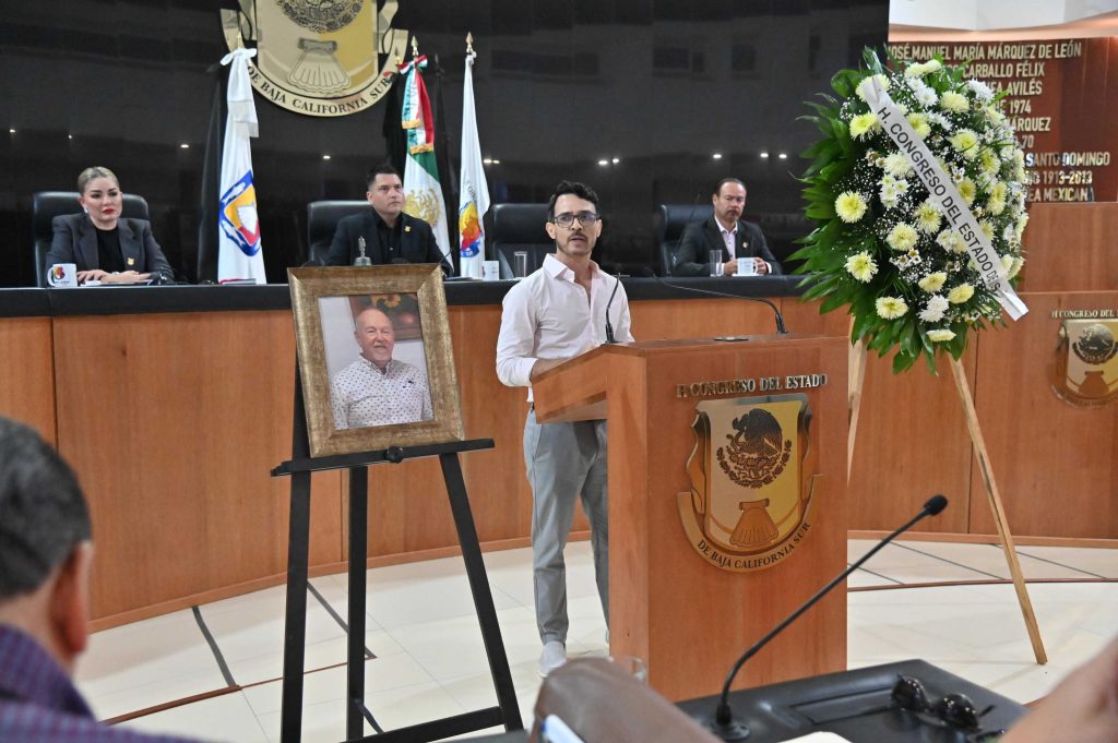 “Hoy recordamos a un extraordinario ser humano, quien hace unos días nos dejó físicamente, pero el recuerdo de sus acciones desarrolladas a su paso por el sector público a lo largo de más de 50 años a favor de las mejores causas de nuestra Patria Chica quedará siempre en la memoria colectiva del pueblo de Baja California Sur”, expresó desde tribuna el legislador.