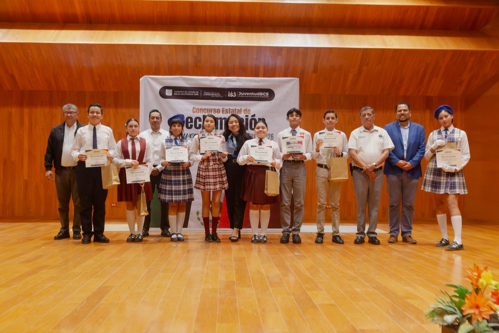 Con motivo del Día de la Bandera, el Instituto Sudcaliforniano de la Juventud (ISJ) organizó el Concurso Estatal de Declamación 2026 en la sala de conciertos de la Escuela de Música, en la ciudad de La Paz, con la participación de jóvenes representantes de los cinco municipios de Baja California Sur. La actividad tuvo como objetivo fomentar la expresión artística, los valores cívicos y el amor por la patria.