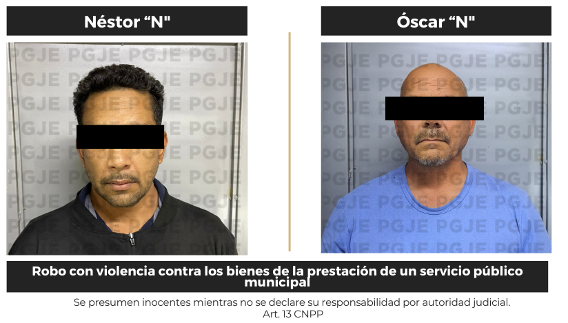 Óscar N y Néstor N, fueron aprehendidos este jueves 5 en calles de la colonia Emiliano Zapata; serán presentados ante el Juez de Control en audiencia inicial, en la que presentarán los datos de prueba que los relacionan con el ilícito y solicitará la vinculación a proceso.