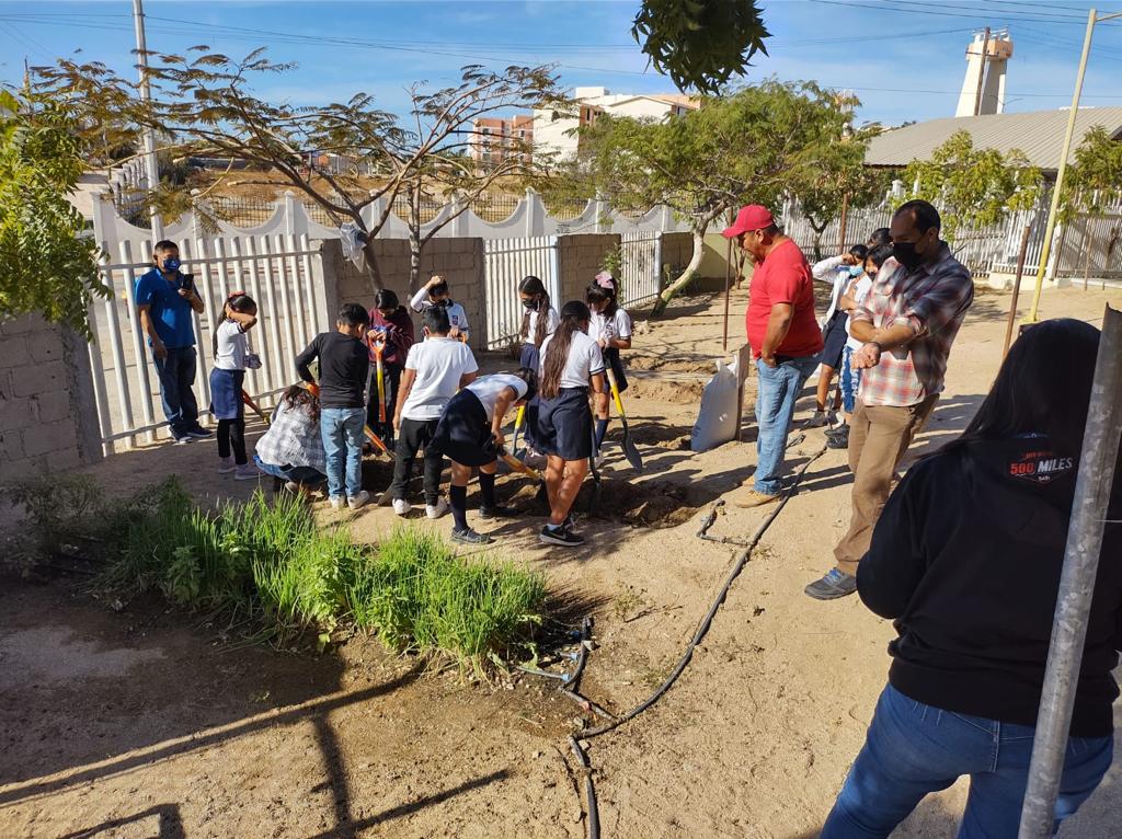 Durante esta semana se acudió a la Escuela Héroes de 1847 ubicada en Cabo San Lucas, para fomentar la creación de un huerto escolar, en esta actividad con la asociación civil Raíz de Fondo, se les entregó material diverso para su mantenimiento, la instalación del sistema de riego por goteo y capacitación para la siembra de semillas de diferentes vegetales.