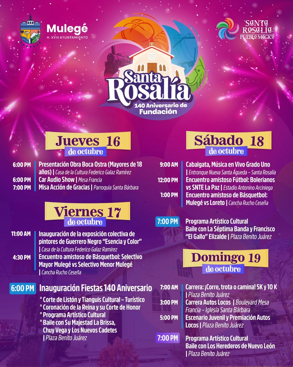 “Que esta edición del 140 aniversario nos fortalezca como comunidad y nos recuerde el valor de nuestras raíces. Santa Rosalía es historia viva, y celebrar su fundación es honrar el espíritu de trabajo y esperanza que nos distingue como muleginos”, concluyó Edith Aguilar Villavicencio.