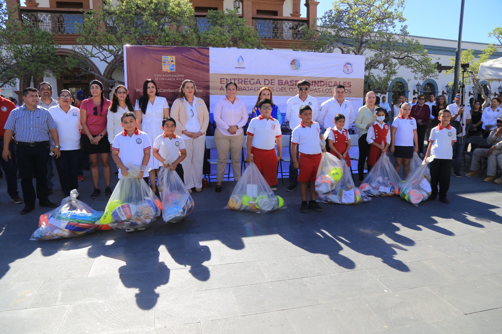Fue en el marco de la entrega de 11 bases sindicales a colaboradores del Oomsapas Los Cabos, que de manos del alcalde Oscar Leggs el personal docente recibió el apoyo en insumos que constan de balones de fútbol, basquetbol, voleibol y en algunos casos de handball, así como conos, platos y aros para complementar algunas actividades físicas recreativas que hacían falta en las escuelas del municipio.