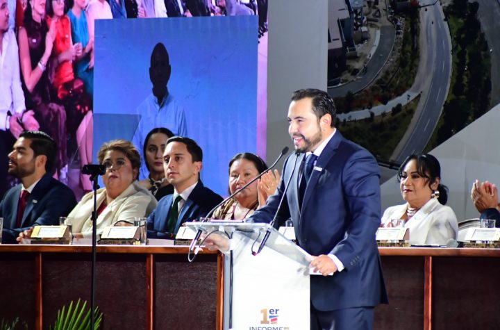 Luego de escuchar el primer informe de resultados del alcalde de Los Cabos, Christian Agúndez Gómez, el gobernador Víctor Manuel Castro Cosío destacó su esfuerzo para mantener el impulso al desarrollo del municipio y responder a la creciente demanda de servicios para la población, lucha que ha permitido transformar para el bienestar de todas y todos”.