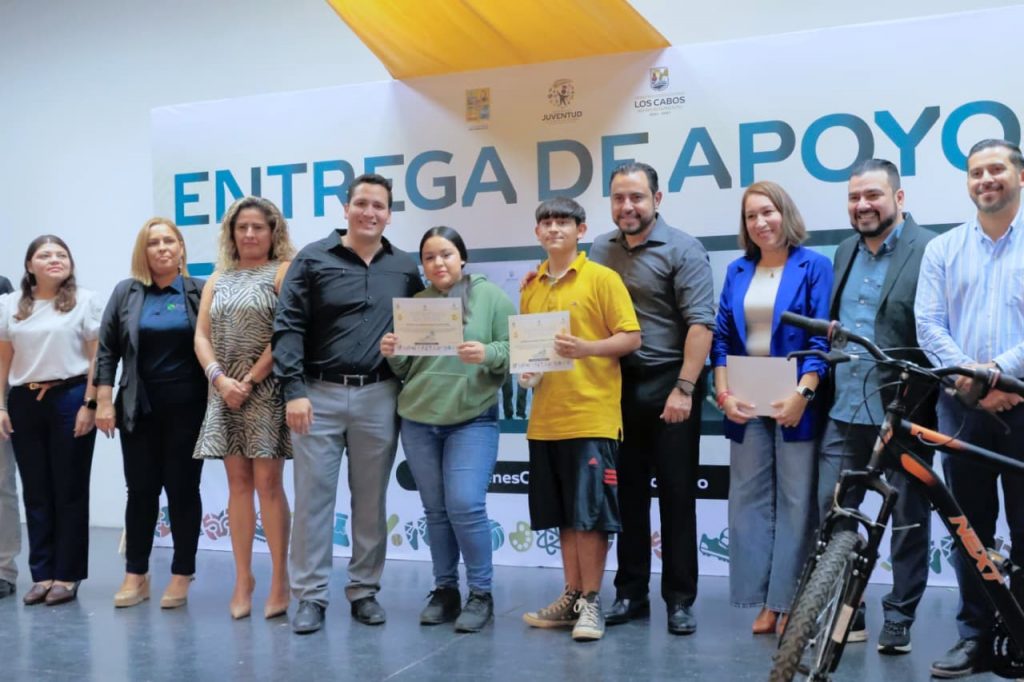 Los Cabos, Baja California Sur | 11 de diciembre del 2025.- El XV Ayuntamiento de Los Cabos, a través del Instituto de la Juventud (INJUVE), realizó la entrega de apoyos correspondientes a los programas “Impulso Emprendedor” y “Apoyo Madre Joven”, además de otorgar tres bicicletas a estudiantes destacados. Estas iniciativas buscan fortalecer el talento, la creatividad y el desarrollo integral de las juventudes del municipio, brindándoles herramientas reales para impulsar sus proyectos educativos, personales y productivos.