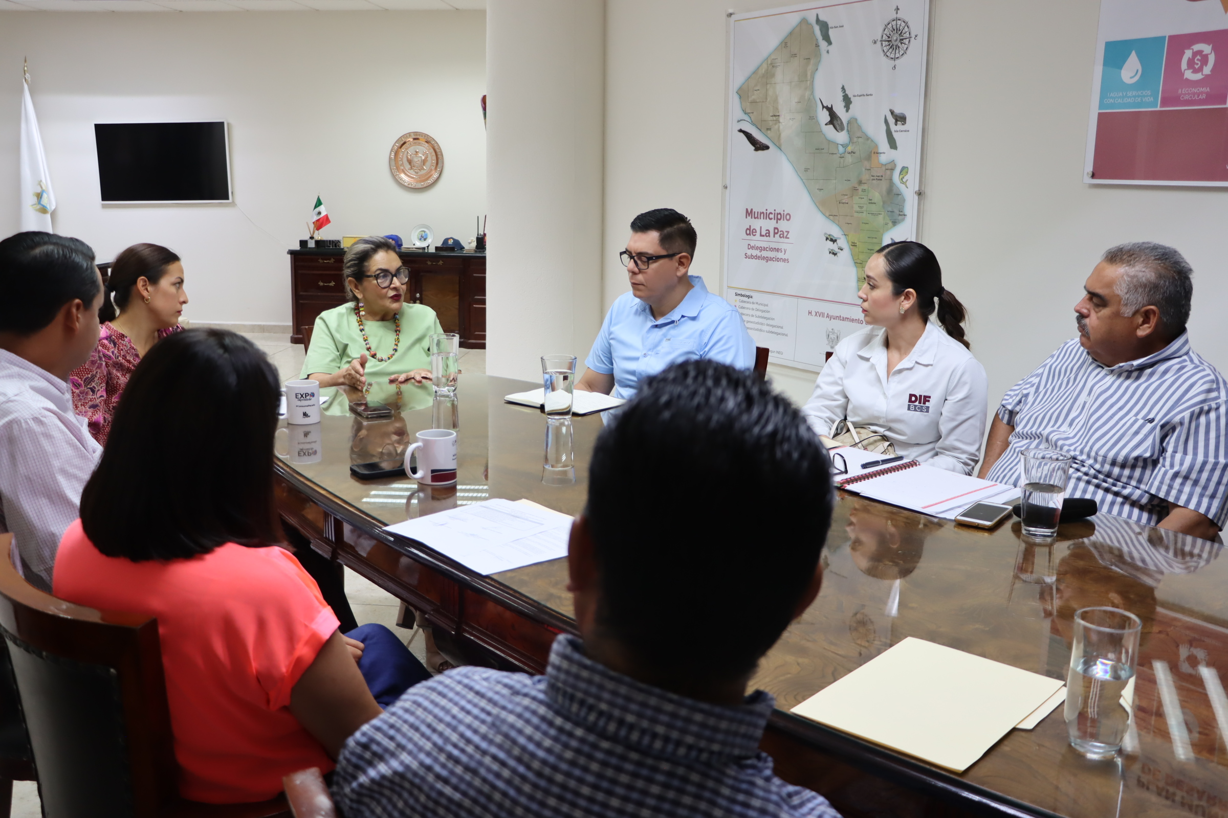 En un encuentro que se llevó a cabo con la alcaldesa de La Paz, Milena Quiroga Romero en compañía del presidente honorario del DIF del Municipio, José Alberto Camberos López, así como por autoridades estatales y municipales, la presidenta del SEDIF señaló, que para la actual administración es prioritario avanzar hasta lograr la total migración de los desayunos fríos a calientes, iniciativa que proviene del Sistema Nacional DIF (SNDIF) y que busca fortalecer los espacios alimentarios.