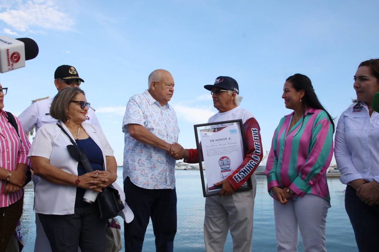 Castro Cosío hizo un especial reconocimiento a Clicerio Mercado, quien por 33 años consecutivos ha organizado torneos internacionales de pesca, destacando la creación de la copa Gobernadores, entre otros.
