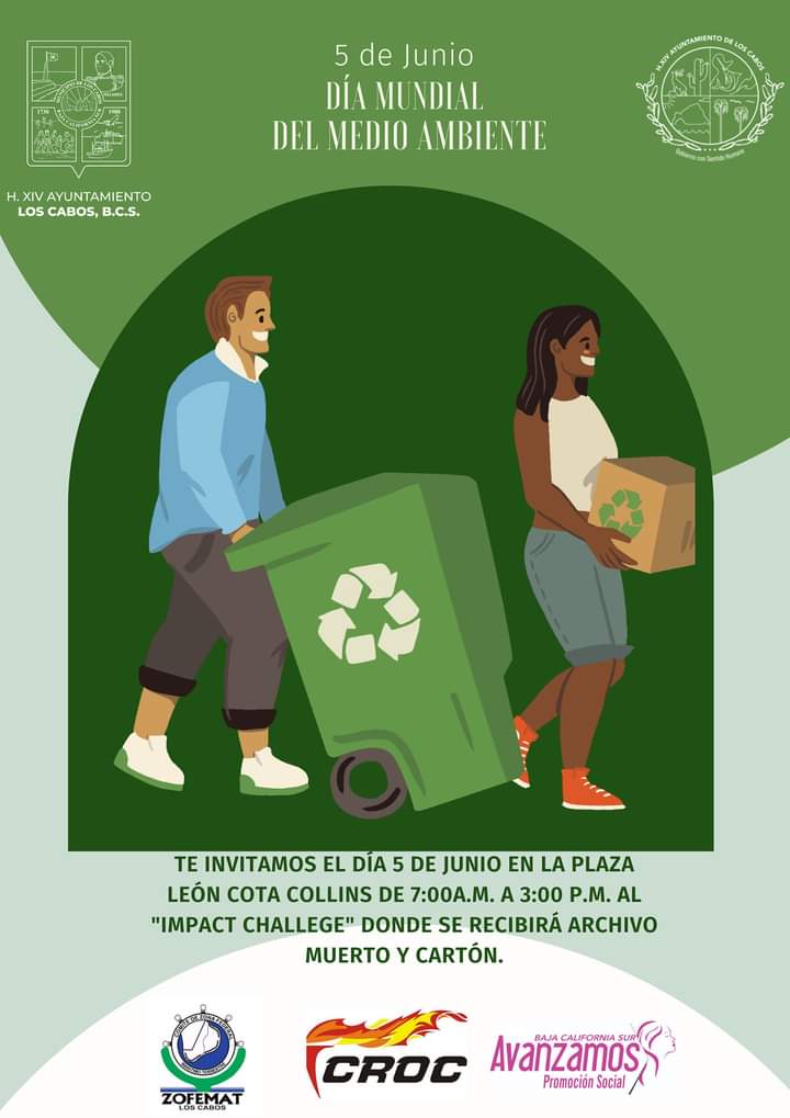 Con la finalidad de promover acciones que contribuyan a contrarrestar daños ambientales, así como a plantear acciones para un mejor futuro, la Coordinación Municipal de la Zona Federal Marítimo Terrestre (Zofemat) de Los Cabos, realizará este domingo 5 de junio la campaña denominada ‘‘Impact Challenge’’, actividad que se desarrollará en el marco de la celebración del Día Mundial del Medio Ambiente.