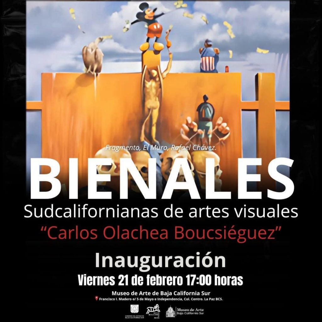 El Museo de Arte de Baja California Sur inaugurará este viernes 21 de febrero a las 17:00 horas, dirigido a público en general, con entrada gratuita a la exposición «Bienales Sudcalifornianas de Artes Visuales «Carlos Olachea Boucsiéguez», un espacio donde concurren diversas manifestaciones plásticas que han marcado la escena artística del estado en los últimos años.