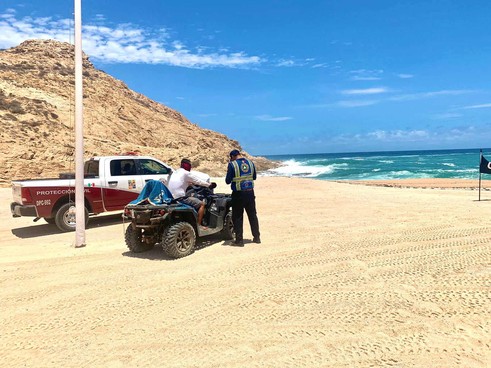 En ese sentido, explicó que recientemente el personal a su cargo con el apoyo de los equipos de la Zona Federal Marítimo Terrestre (Zofemat) y la Dirección General de Seguridad Pública, Policía Preventiva y Tránsito Municipal, realizaron un recorrido de inspección por las playas de Cabo San Lucas, debido al fuerte oleaje que se registró por la cercanía de la tormenta tropical “Blas”, motivo por el cual se colocaron banderas negras para evitar que la ciudadanía ingresara al mar y que hubiera perdidas por lamentar.