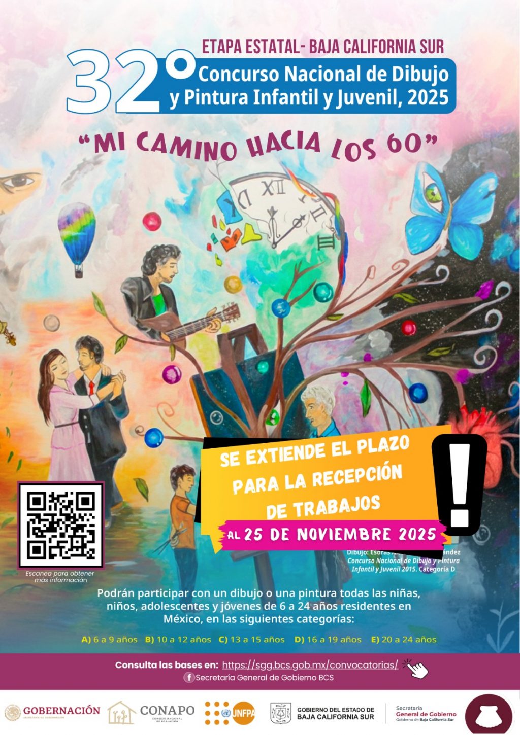 En Baja California Sur, se extiende hasta el 25 de noviembre la recepción de trabajos para participar en la etapa estatal del Concurso Nacional de Dibujo y Pintura Infantil y Juvenil 2025: “Mi camino hacia los 60”, informó la responsable de los temas de población de la Secretaría General de Gobierno, Flor Barrera Escárcega.