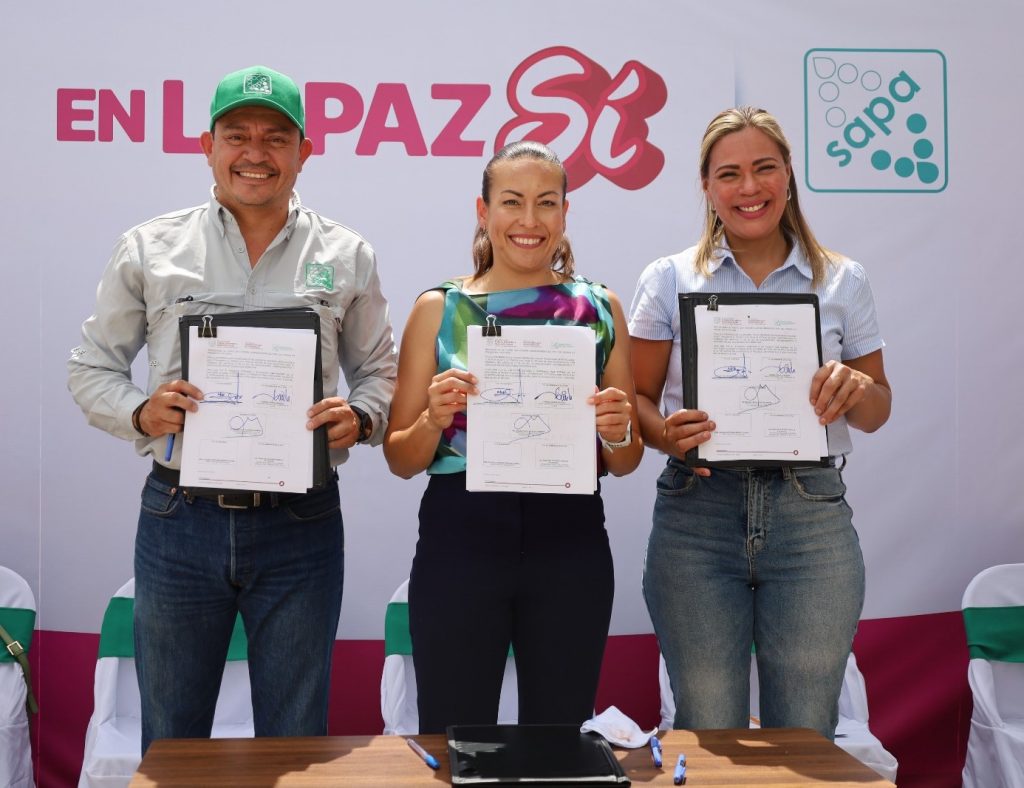 La firma estuvo encabezada por Cinthya Fátima Montufas Chávez, directora general de ICATEBCS; Milena Quiroga Romero, presidenta municipal de La Paz; y Abimael Ibarra, director general de OOMSAPAS La Paz.