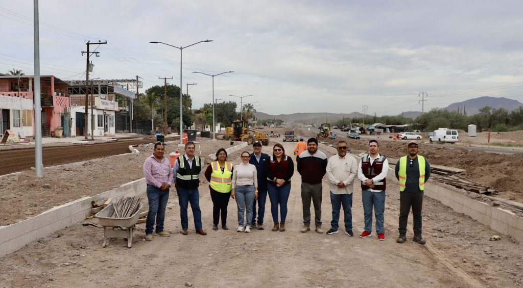Como parte del recorrido, se verificaron los avances técnicos en el bulevar Golfo de California, donde se realizan trabajos integrales que incluyen la construcción de un vado y un dentellón de concreto, así como la instalación de guarniciones y banquetas. De igual manera, se constató el progreso en la pavimentación de las calles Colegio, Pino Suárez y Agua Dulce.