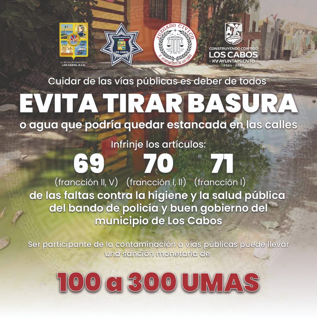 Estas medidas buscan no solo prevenir la contaminación y el desperdicio del agua, sino también contribuir a mejorar la imagen urbana de Los Cabos. El Juzgado Cívico exhorta a la población a sumarse a estas acciones en favor de la prevención de enfermedades.