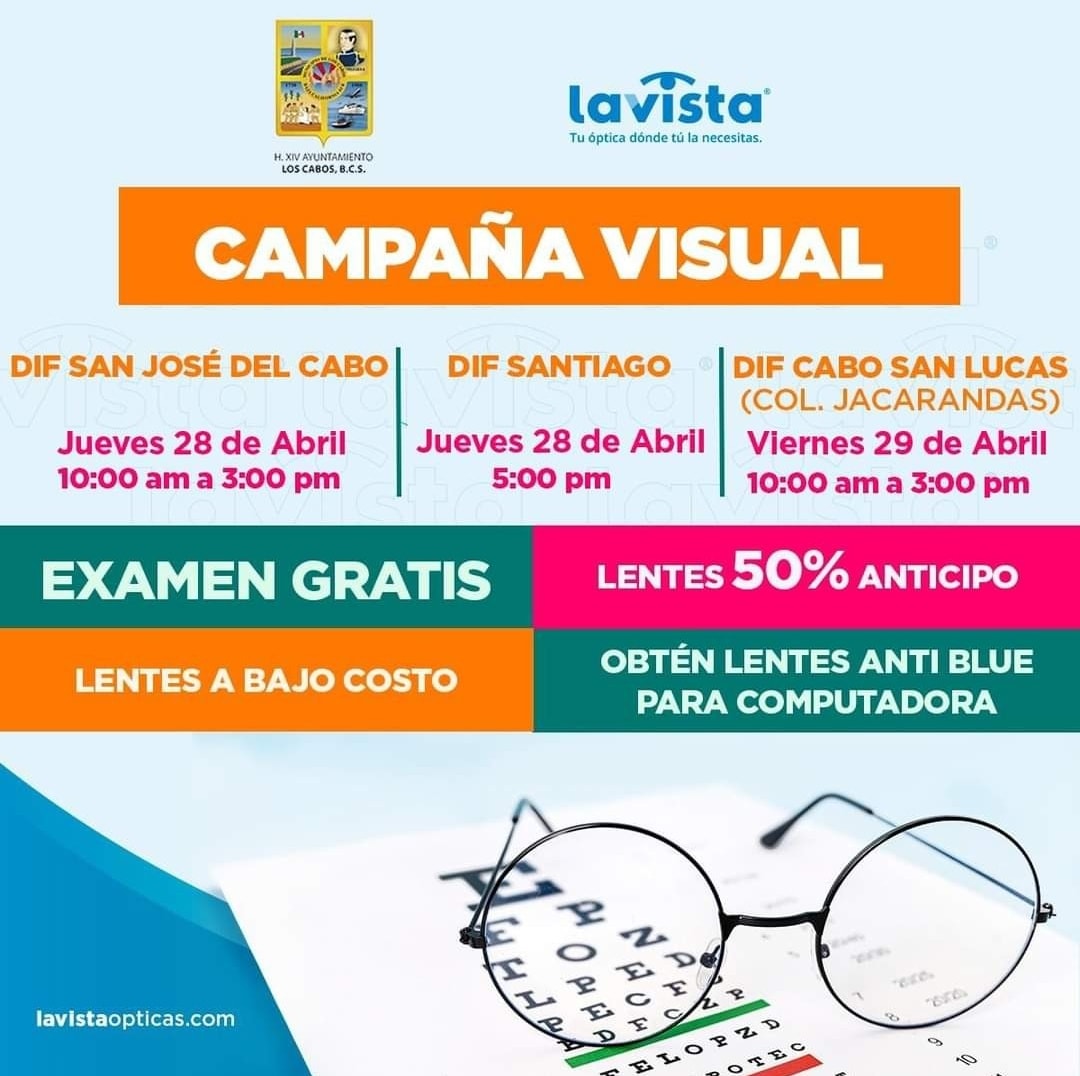 A fin de contribuir con el bienestar y salud de la ciudadanía, tal como lo ha instruido la presidenta honoraria del SMDIF Los Cabos, Flora Aguilar ; el Sistema Municipal en coordinación con Lavista Servicios Ópticos continúan con su campaña visual, ofreciendo a la población examen de la vista totalmente gratis, además de lentes a bajo costo.