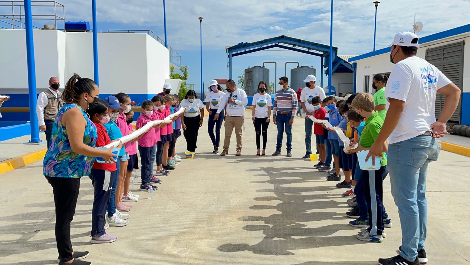 “Cumpliendo con el compromiso de fomentar el cuidado del vital líquido en la niñez, realizamos un recorrido con los estudiantes de tercero de primaria del Colegio Mission, donde además de la visita a la planta potabilizadora San Lázaro, realizamos diferentes actividades recreativas y la entrega de rompecabezas”, explicó la directora de Cultura del Agua.