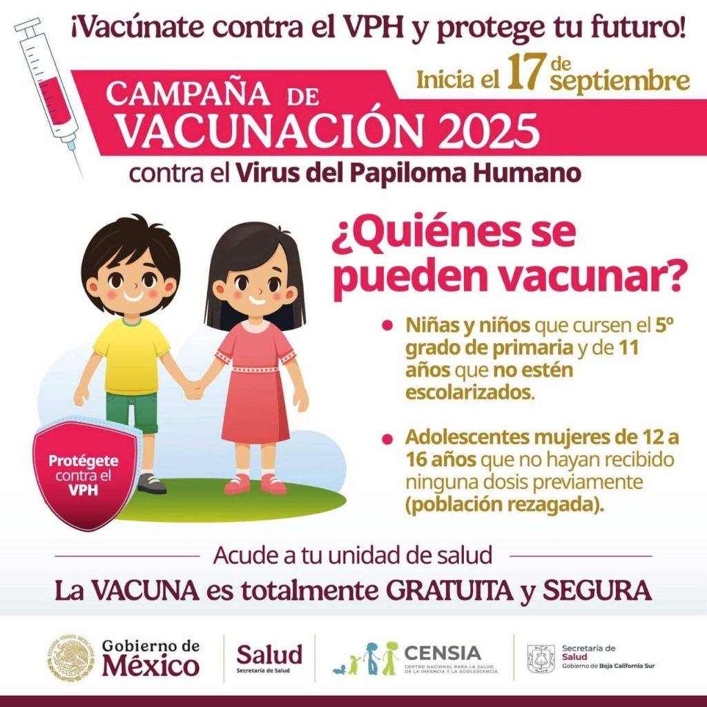 Yanicsa Higuera agregó que también podrán vacunarse gratuitamente niños y niñas de 11 años que por alguna razón no están estudiando, así como mujeres de 12 a 19 años que no hayan recibido la dosis previamente, para ello deberán acudir a la unidad médica familiar más próxima a su domicilio.
