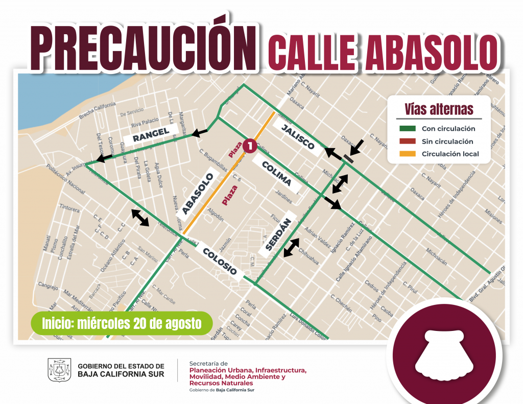 A partir del miércoles 20 de agosto darán inicio los trabajos de reconstrucción en dos tramos de losas de la calle Mariano Abasolo en la ciudad de La Paz, los cuales han presentado afectaciones derivadas del tránsito vehicular. Esta acción forma parte del Programa Estatal de Atención de Vialidades, impulsado por el Gobierno del Estado, a través de la Secretaría de Planeación Urbana, Infraestructura, Movilidad, Medio Ambiente y Recursos Naturales (SEPUIMM).