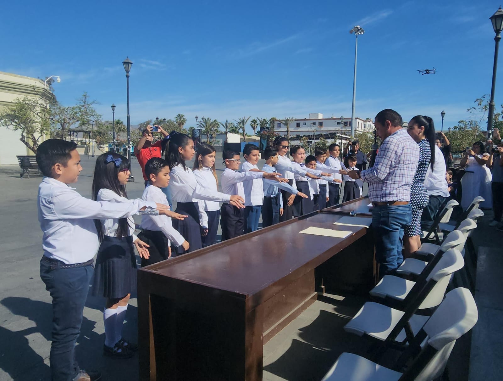 Dentro del marco de las festividades del Día de la Niñez, el Ayuntamiento de Los Cabos, -durante el acto cívico de honores a la bandera en la plaza Teniente Antonio Mijares-, instaló oficialmente el Cabildo Infantil 2024, encabezado por la presidenta municipal infantil, junto con la síndica municipal y el cuerpo de regidoras y regidores, compuesto por las niñas y niños que resultaron seleccionados; cabe destacar que la convocatoria para el Cabildo Infantil se lanzó en el mes de marzo.