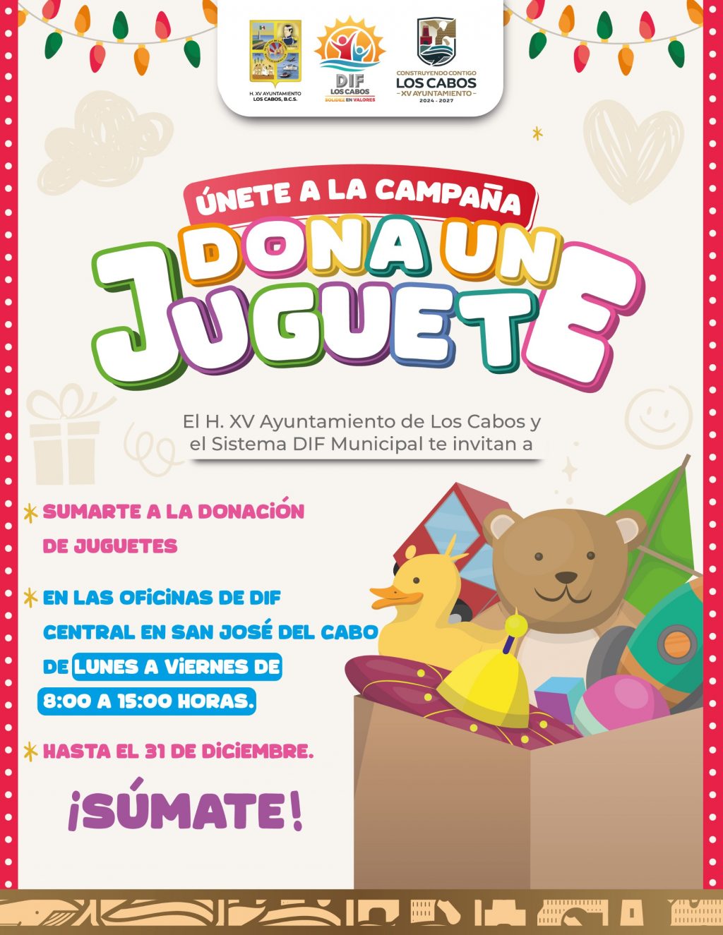 Los Cabos, Baja California Sur. – En esta temporada navideña, el Sistema Municipal para el Desarrollo Integral de la Familia (SMDIF) de Los Cabos, que preside, Sol Delgado Moreno, tiene la misión de llenar de alegría y brindar momentos especiales a niñas y niños con el lanzamiento de la campaña de donación de juguetes.