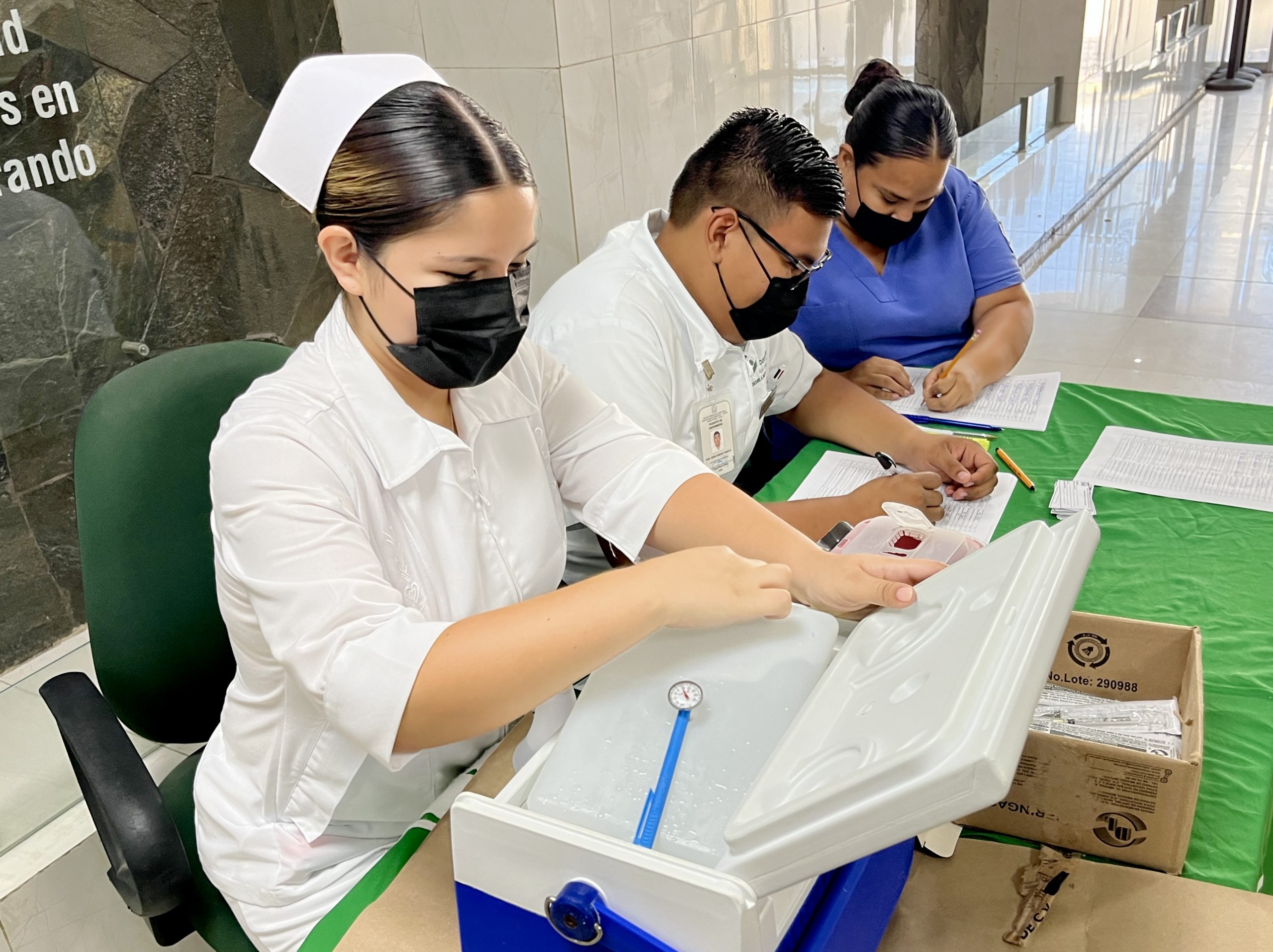 La coordinadora delegacional de Enfermería en Salud Pública, Irma Elisa Gallegos Palafox, señaló que al momento el IMSS en BCS ha aplicado más de 100 mil dosis, desde el pasado mes de octubre, cuando se inició con la campaña de vacunación.