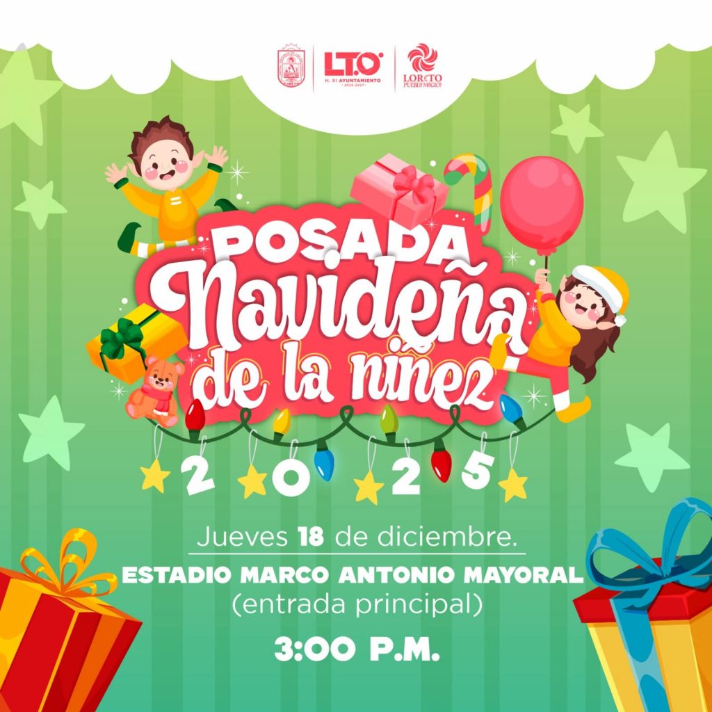 Loreto, B.C.S. 17 de diciembre, 2025.- Para fortalecer los lazos de amistad, cariño y unión familiar que invade los corazones en la época decembrina, el H. XI Ayuntamiento que encabeza Paz de Alma Ochoa Amador, tiene el honor de invitar a los niños y niñas del municipio de Loreto a la gran «POSADA NAVIDEÑA DE LA NIÑEZ 2025».