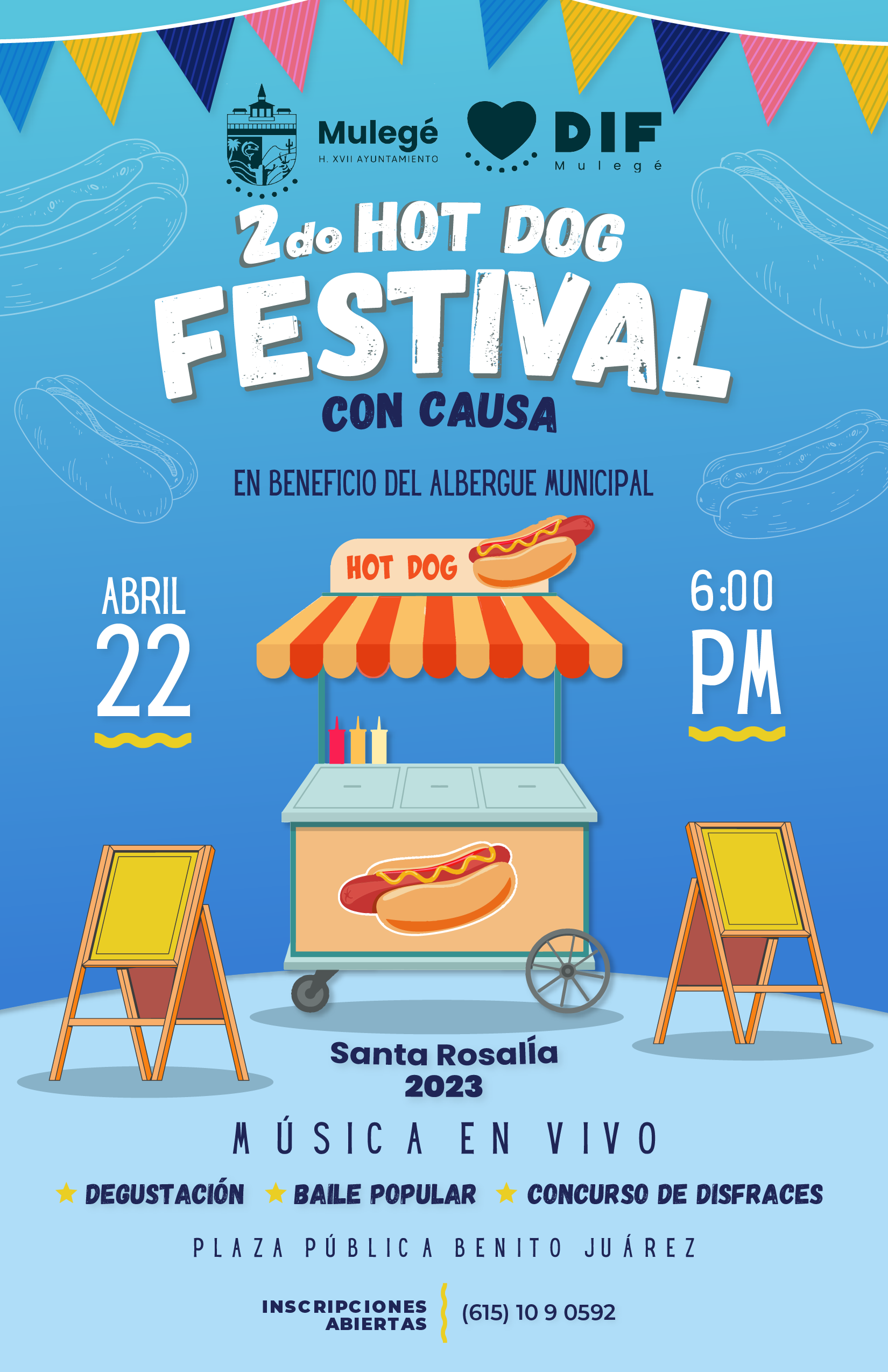 La alcaldesa de Mulegé, Edith Aguilar Villavicencio, informó que, el H. XVII Ayuntamiento de Mulegé invita al segundo “Festival del hot dog con causa”, mismo que se llevará a cabo el sábado 22 de abril a partir de las 18:00 horas en la Plaza Pública Benito Juárez de Santa Rosalía.