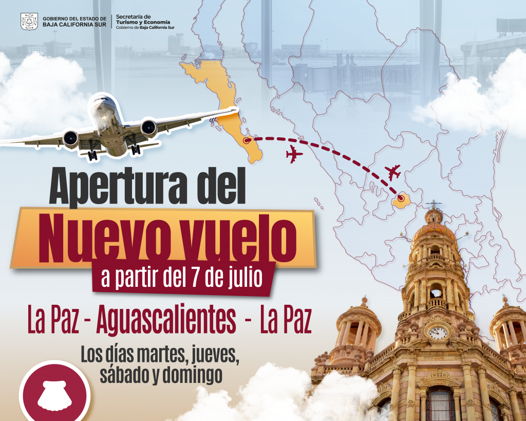 Con el firme compromiso de seguir fortaleciendo la conectividad aérea de Baja California Sur y consolidar al municipio de La Paz como un destino atractivo para el turismo nacional y el sector de negocios, iniciará operaciones la ruta La Paz – Aguascalientes, a partir del próximo 7 de julio de 2025, operada por TAR Aerolíneas.