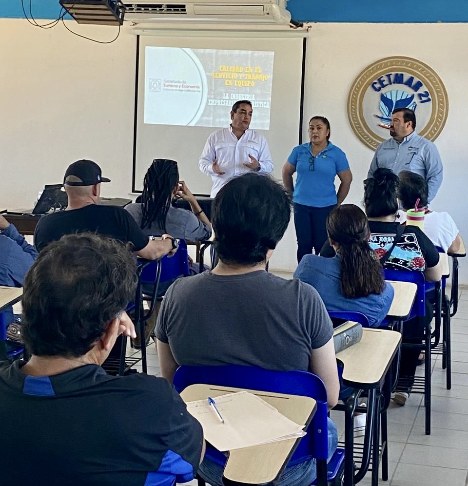 Para fortalecer el sector servicios a través de una mejor atención a locales y visitantes, la Secretaría de Turismo y Economía (SETUE), llevó a cabo la capacitación “Calidad en el Servicio, Estándares de Calidad y Trabajo en Equipo”, a personal operativo y administrativo de Guerrero Negro, municipio de Mulegé, así lo informó Juan Carlos Cañedo Preciado, director de Capacitación y Cultura Turística.